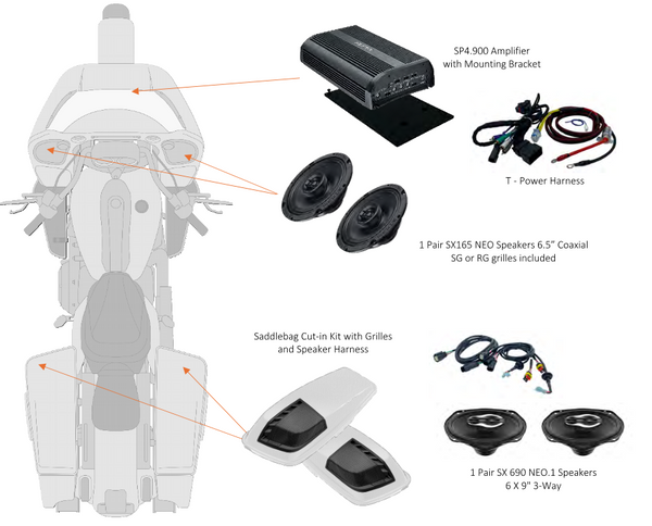 This kit also has cut in kits for your saddlebag lids, so if you dont have rear speakers, fear not.
